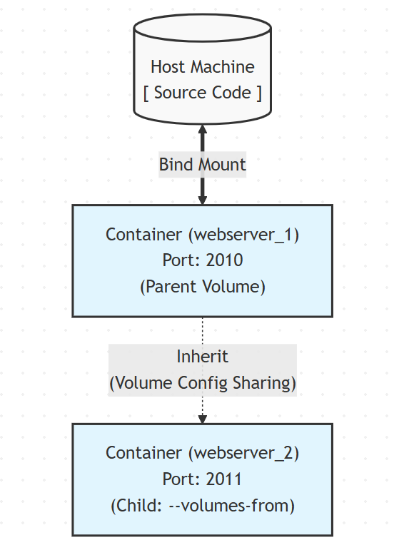 하지만 보다 확장성 있는 아키텍처를 위해서는 단순히 컨테이너를 띄우는 것에서 나아가, 호스트의 파일을 컨테이너와 연결하고(Bind Mount), 여러 컨테이너가 동일한 데이터를 바라보게 설정(--volumes-from)할 수 있어야 한다.