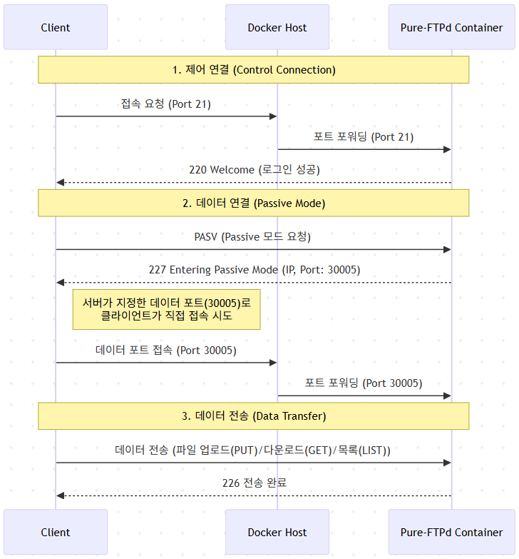 특히 FTP의 동작 원리인 Passive Mode를 이해하고 이를 Docker 네트워크 설정에 반영하는 과정이 중요하다.