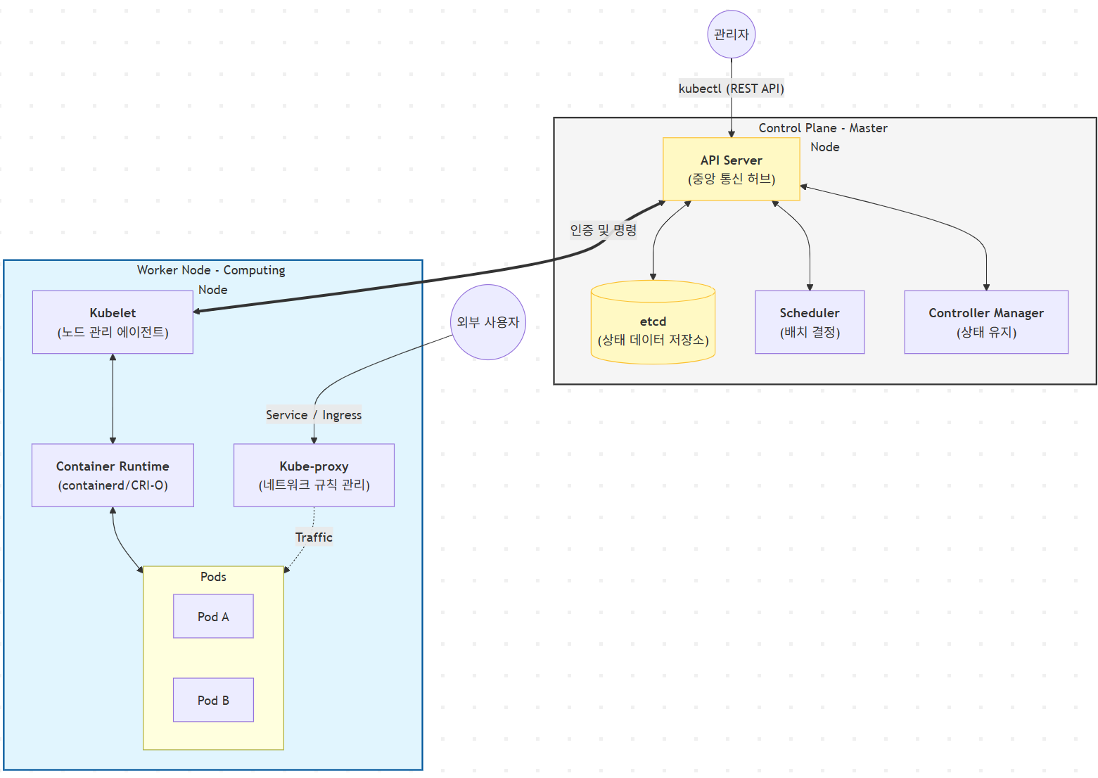 트래픽 전달: 사용자가 파드가 없는 노드로 접속하더라도 해당 노드의 kube-proxy가 트래픽을 가로채 실제 파드가 떠 있는 노드로 전달(Forwarding)한다. 이 과정 덕분에 클러스터 전체가 하나의 서비스 장치처럼 동작한다.