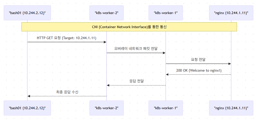 | 외부 파드 주소 | 10.244.x.x | 타 노드의 파드에서 해당 파드로 접근할 때 사용하는 주소 |