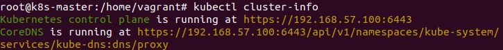 - Kubernetes control plane is running at... :쿠버네티스의 핵심부인 컨트롤 플레인(특히 API 서버)이 192.168.57.100이라는 IP의 6443번 포트에서 돌아가고 있음.