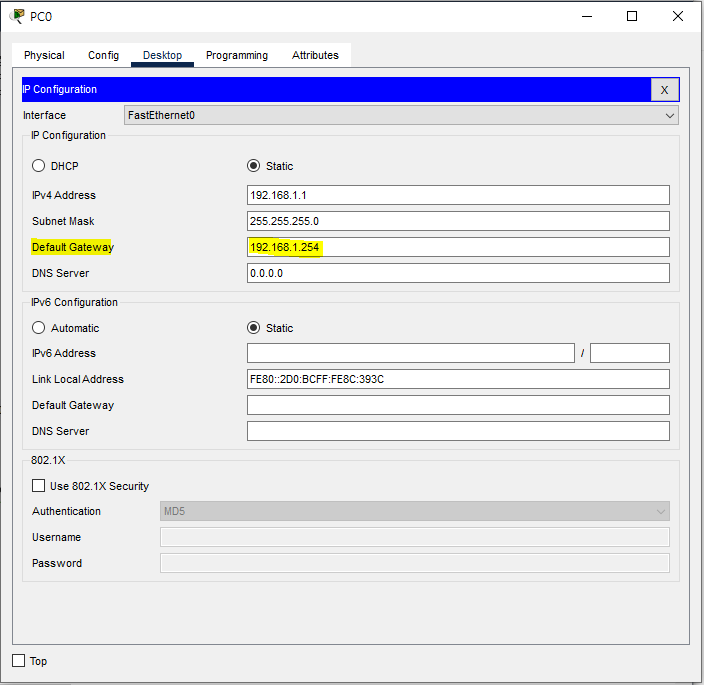 | Network A | PC0 ~ PC3 | 192.168.1.1 ~ 4 | 255.255.255.0 | 192.168.1.254 |