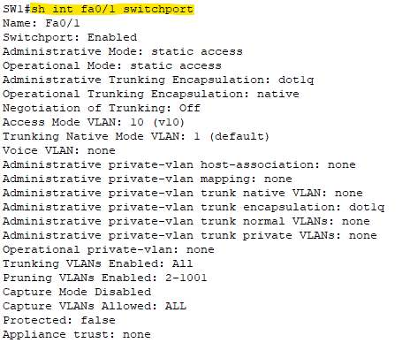 예: show interfaces fa0/1 switchport