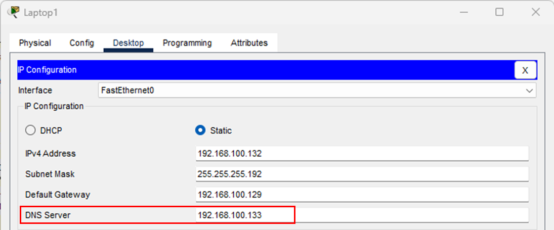 DNS Server: 192.168.100.133