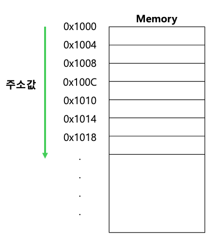 int의 크기가 4바이트이므로, 각 요소의 주소는 4바이트씩 증가한다.